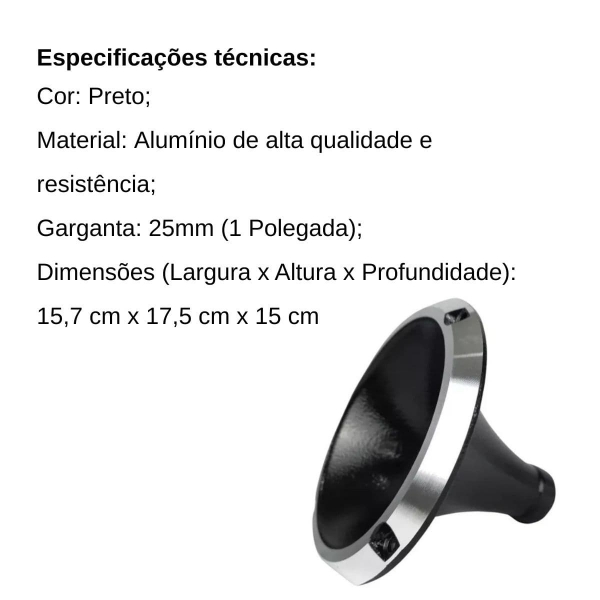 Informações do produto: Kit 4 Corneta Cone Curto Rosca Bocal Alumínio Preta 14-25 Som