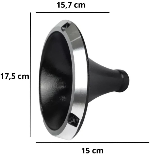 - Dimensões (Largura x Altura x Profundidade): 15,7 cm x 17,5 cm x 15 cm (cada corneta)