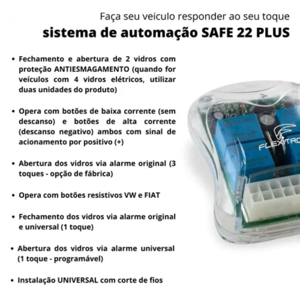 Transforme a experiência de usar os vidros elétricos do seu carro com o Flexitron SAFE 22 PLUS. Conforto, praticidade e segurança agora estão ao seu alcance!