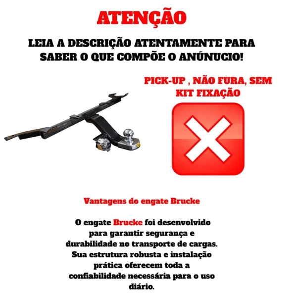 Tração Máxima: Suporta 500 kg de reboque (lembre-se de verificar a limitação de peso máxima permitida pelo fabricante do seu veículo).