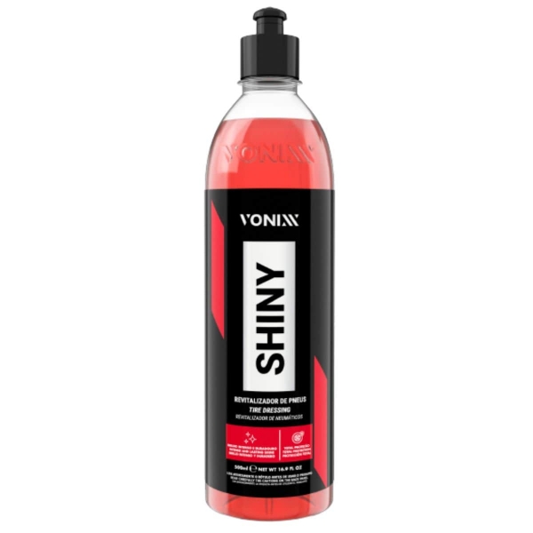 Shiny é o produto ideal para manter a beleza e brilho dos pneus de seu veículo. Desenvolvido exclusivamente pela Vonixx, sua fórmula única protege e revitaliza a borracha dos pneus, mantendo seu brilho por mais tempo.