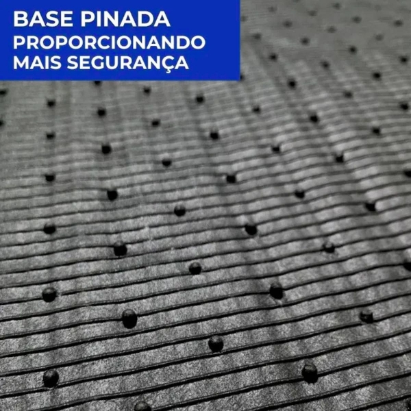 Antiderrapante Eficaz: Possui base pinada antiderrapante de alta aderência, que evita o deslizamento do tapete e assegura maior segurança durante a direção.